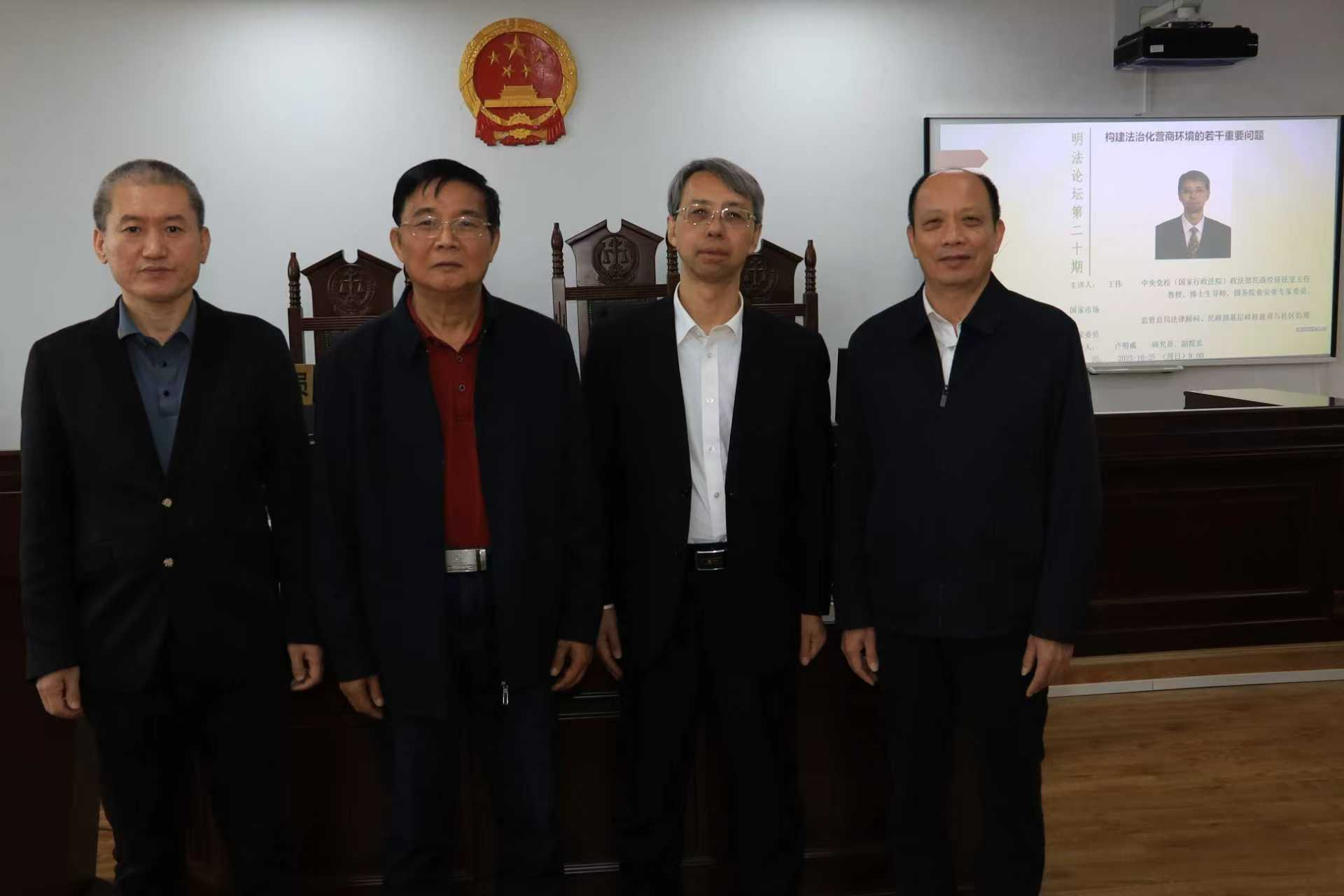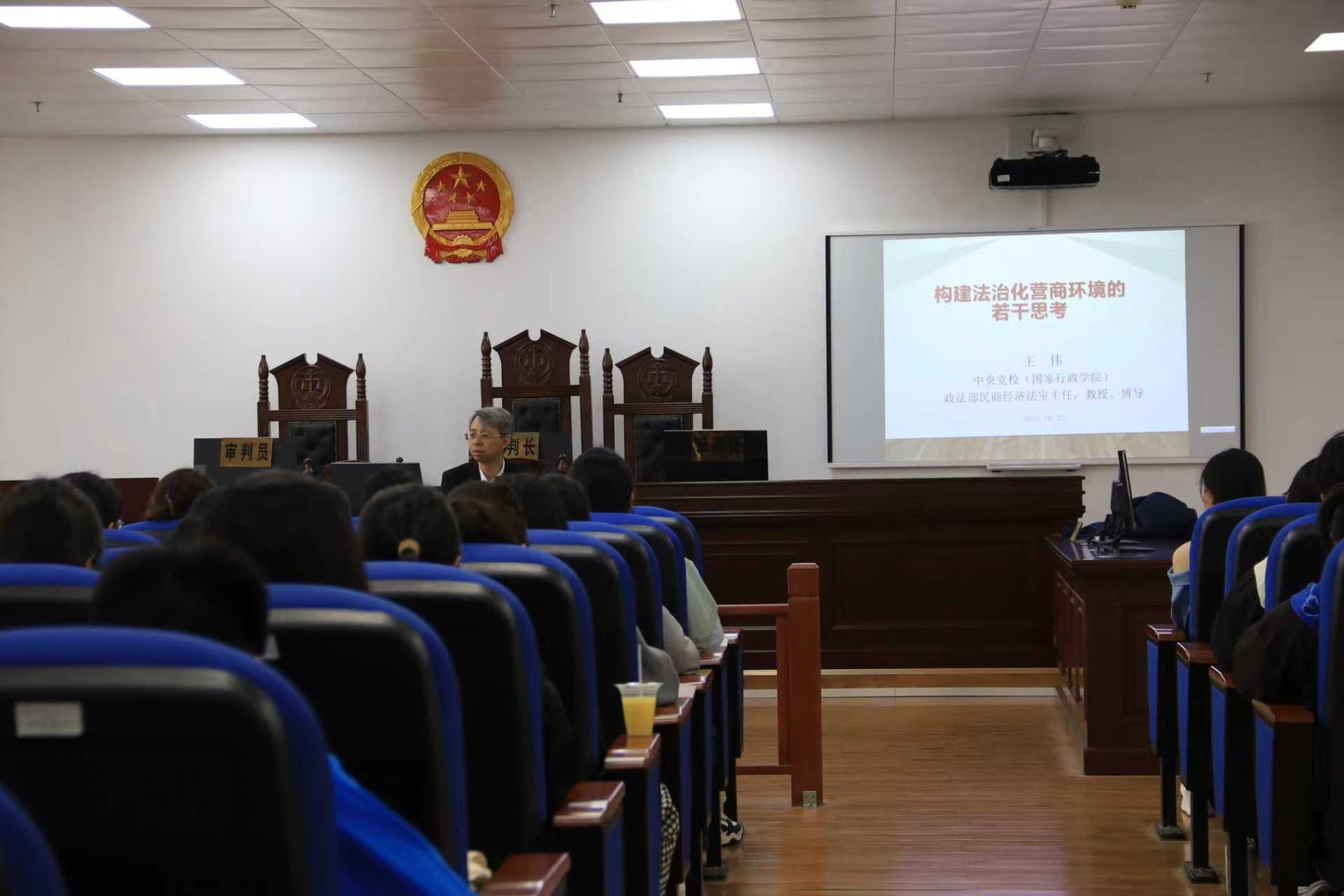 近日中共中央党校(国家行政学院)政法部民商经济法室主任、博士研究生导师在五合校区理综楼模拟法庭,开展了题为《构建法治化营商环境的若干重要问题》的学术报告这是BB体育 明法论坛举办的第二十期学术活动学术报告由卢明威副院长主持,法律系教师、研究生和本科生100余人参加报告会