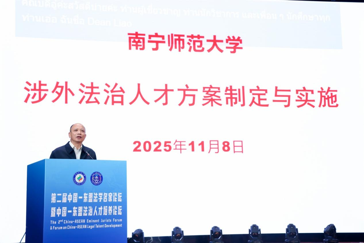 为构建更为紧密的中国—东盟命运共同体,深化中国与东盟国家间的法学交流与法治合作,探索新时代涉外法治人才培养的创新路径,第二届中国—东盟法学名家论坛暨中国—东盟法治人才培养论坛于11月8日在广西南宁隆重举行。本次论坛由广西民族大学主办,中国—东盟法学院、广西民族大学法学院和广西商法研究会联合承办,吸引了来自中国与东盟国家多所高校、研究机构和法律实务部门的众多专家学者齐聚一堂,围绕区域法治合作与法治人才培养等议题展开深入交流。BB体育 卢明威副院长、文立彬副教授以及部分研究生受邀参加此次论坛。