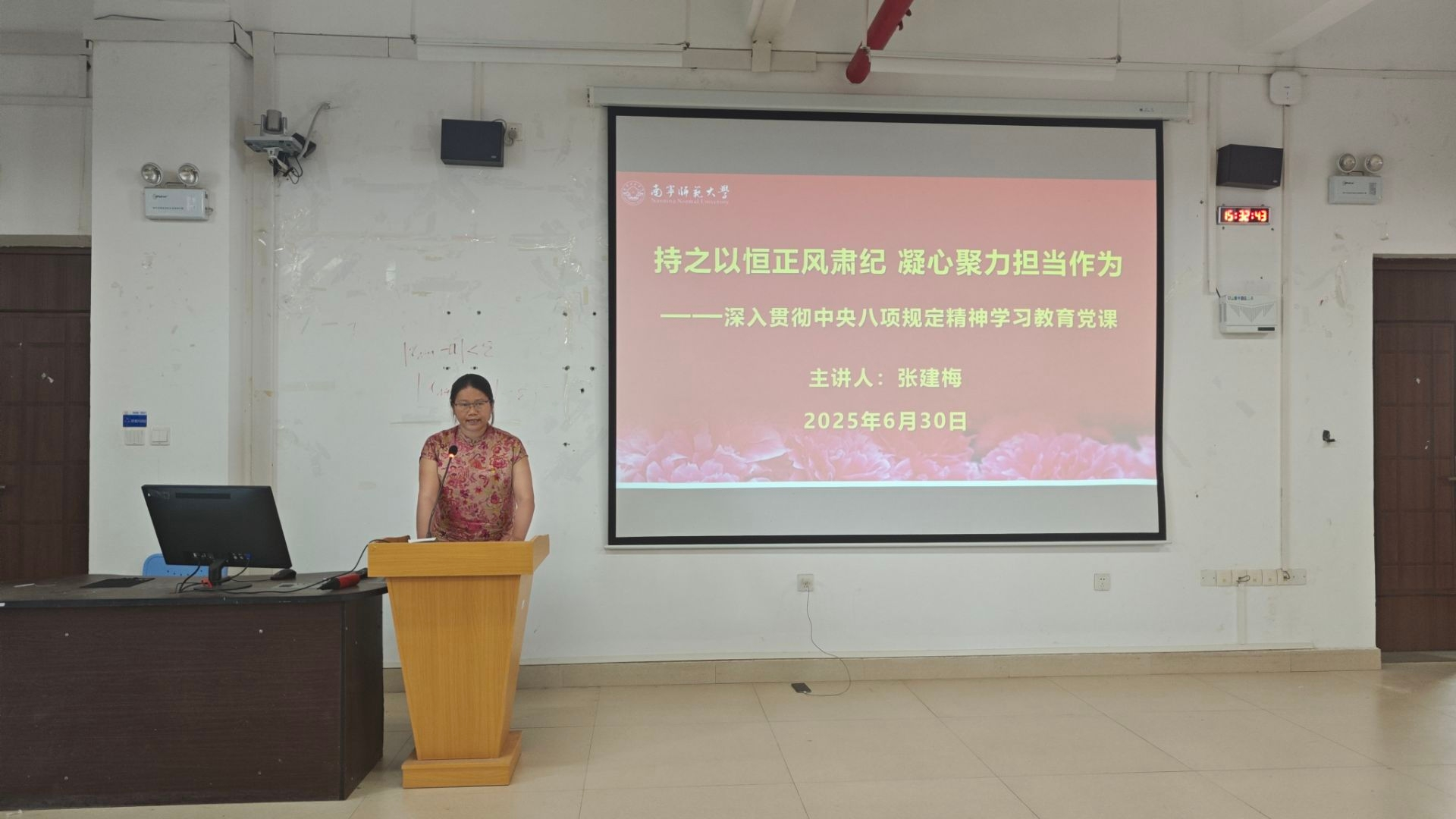 开展深入贯彻中央八项规定精神系列专题党课活动。许建、尹文嘉、张建梅三位同志分别授课,学院全体党员积极参与学习,进一步筑牢思想根基,强化作风建设。